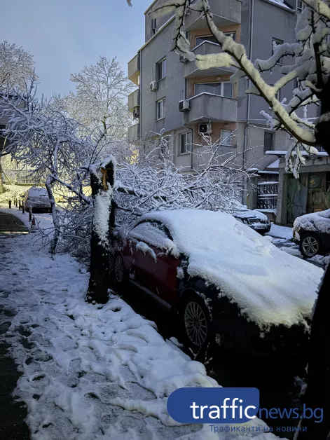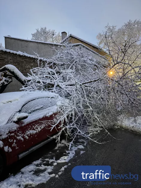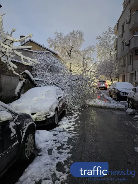 Силният снеговалеж от последните часове създаде сериозни проблеми в Пловдив, след като десетки дървета и клони се срутиха в различни части на града. Най-засегнати са кварталите „Кючук Париж“, „Христо Смирненски“ и „Съдийски“, където паднали дървета са нанесли значителни щети по паркирани автомобили и са затруднили движението, сигнализират читатели на TrafficNews