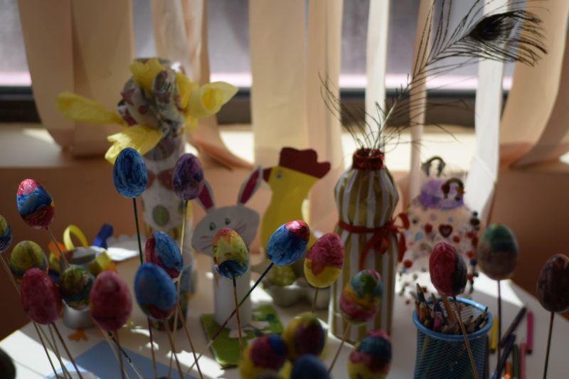 На Велики четвъртък възпитаници на пловдивската ДГ „Червената шапчица“ създадоха празнична украса от рециклирани материали, след като се вслушаха в съветите на Регионалната инспекция по околната среда и водите – Пловдив за намалят отпадъците си и да ги използват повторно.
