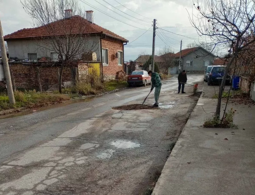 Тази страхотна картина бе показана в профила на журналист от Ново село- Елена Емануилова. Дните на поройни дъждове оставиха след себе си дълбоки дупки по улицата, а покрай бордюрите се натрупаха мокри диги от пясък, влачен от водата. Тежък, лепкав и труден за почистване дори за възрастен човек. Но момчетата не се отказаха, споделя Емануилова.