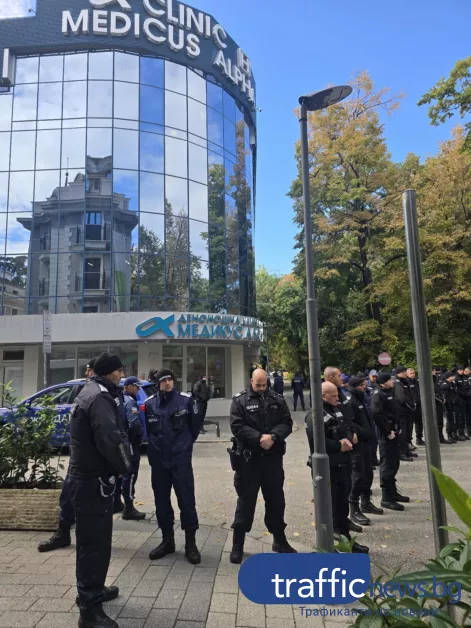 Мястото на протеста е под засилен полицейски контрол. Десетки униформени са изградили плътен кордон, позициониран на по-голямо разстояние от входа на клиниката. Вероятно мярката е предприета заради опасения от нова ескалация, след като по време на предходните протестни действия се стигна до счупени прозорци и опити за влизане в сградата.