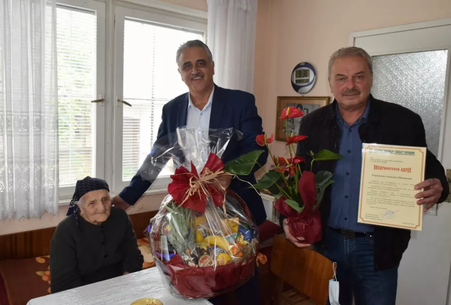 „Всички хора си мечтаят да доживеят до 100 години, а ти вече си ги надминала. Радостен и щастлив човек си. Пожелавам ти много здраве и да надминеш дядо Георги, който живя до 107 години“, каза кметът Димитър Иванов.