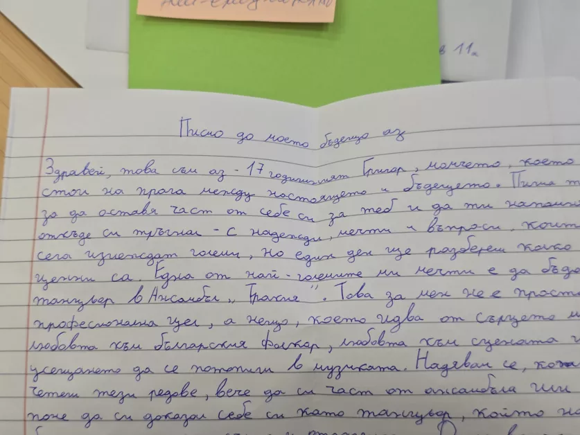 Специален момент в конкурса беше и участието на дванадесетокласничката Мария Цонева, която спечели първо място с писмо до бъдещето си Аз, написано още в осми клас. Писмата на класа са били запазени от класния ръководител и тази година са включени в конкурса. Мария споделя, че мечтата ѝ тогава да стане неврохирург днес е прераснала в желание да следва ветеринарна медицина и да спасява животни.