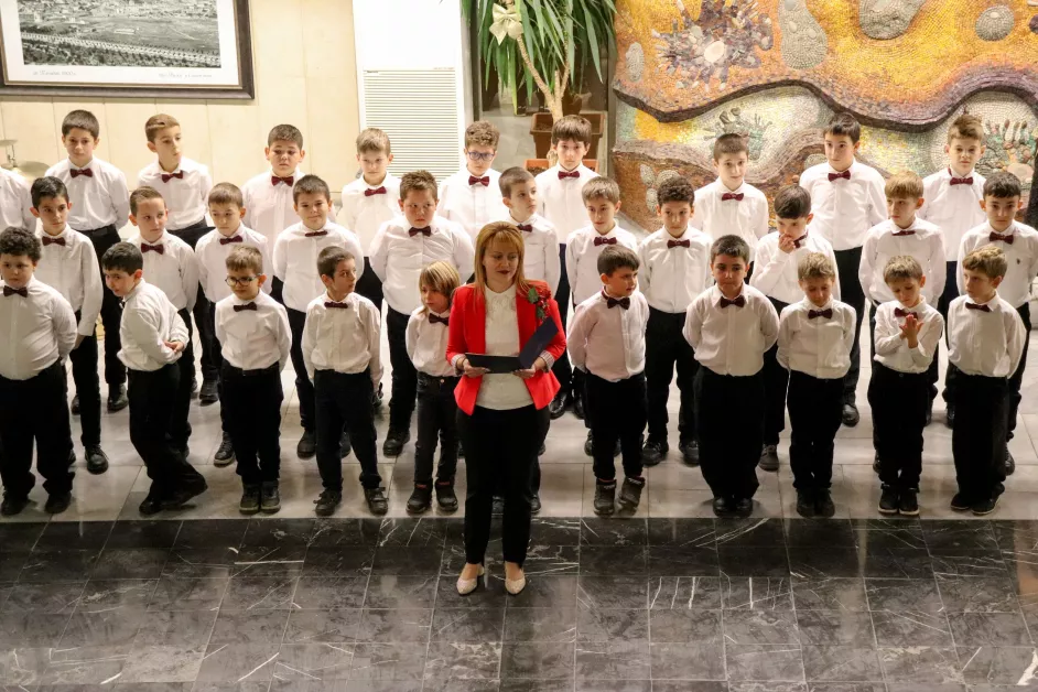 В навечерието на Рождество Христово сградата на Областна администрация Пловдив се превърна в сцена на светлина, вдъхновение и празничен дух. Два от най-изявените хорови състави на Пловдив – Хорът на пловдивските момчета и младежи „Стефка Благоева“ и Детско-девическа формация „Евмолпея“ представиха в края на седмицата тържествен концерт, който събра многобройна публика и изпълни залата с топлина, емоция и изключително музикално майсторство. В програмата се включиха и ученици от класа по ударни инструменти на Ванеса Петкова при НУМТИ „Добрин Петков“, които допринесоха за богатството на празничната атмосфера.