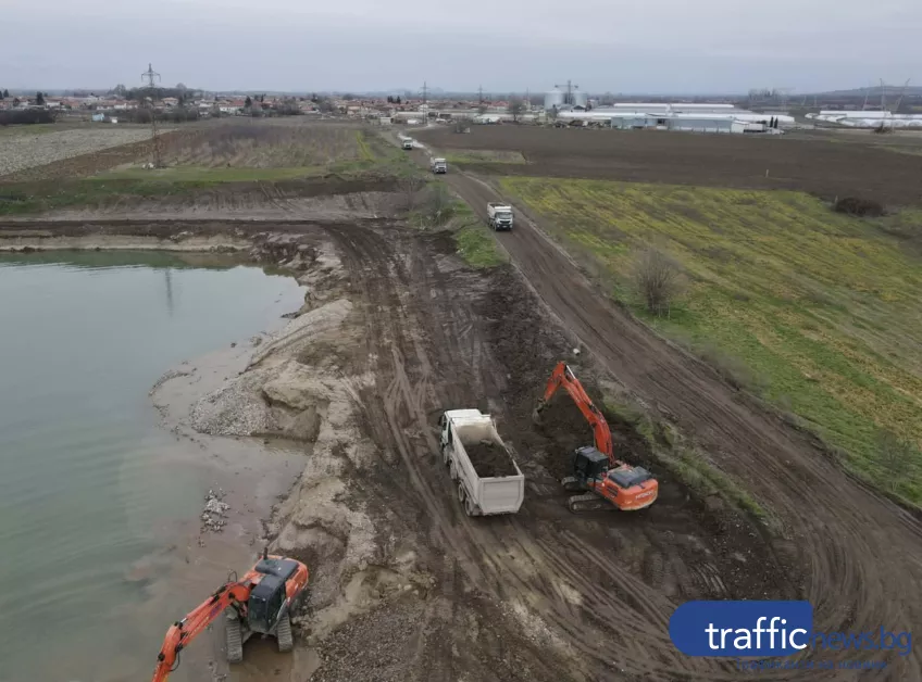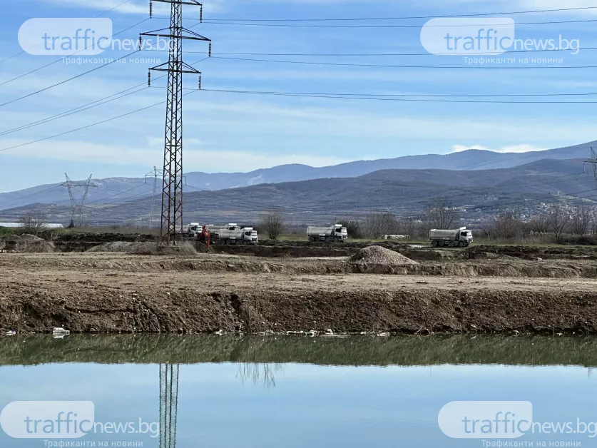 На място картината не наподобява обикновен строеж. В ранния следобед, в деня в който екип на медията ни посети обекта, на терена работеха багери, които непрекъснато изкопаваха и премествaха земни маси. Малко след 12ч. в имота навлязоха последователно около десет товарни камиона, които започнаха да се подреждат за товарене. Машините се пълнеха една по една, след което част от тях поеха към изхода на града, а други се отправиха към вътрешен парцел, в който също се виждат следи от разкопаване. Около половин час по-късно същите камиони се върнаха и цикълът започна отново. Процесът изглежда координиран, липсва друг вид техника, която да напомня, че в парцела се изгражда рибарник.