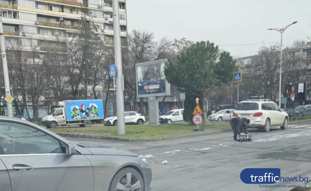 На място останали десетки пластмасови кофички, а разлятото мляко образувало живописни бели петна по платното. За щастие, до пътнотранспортно произшествие не се стигнало, макар че част от водачите рязко намалили, за да избегнат „млечната изненада“.