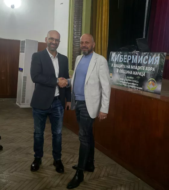 „Моята мисия е ясна – да изградим поколения, които мислят киберпревантивно и разпознават заплахата, преди тя да ги достигне. В дигиталната ера знанието е първият щит, а обучението – най-силното оръжие срещу страха и незнанието. Благодаря на кмета и екипа на Община Марица за отговорността, визията и реалните действия в защита на децата – пример, който заслужава да бъде последван в цяла България“, заяви топ експертът проф. д.н. Илин Савов. Според него изкуственият интелект прави по-опасни киберпрестъпниците и затова обученията в превенция трябва да се провеждат не само сред учениците и техните преподаватели, но и в обществото.