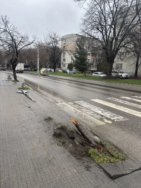 Катастрофа в близост до детска градина в пловдивския квартал "Прослав". Пътният инцидентът е станал заради изпреварване, след което водачът изгубил контрол и бутнал пътен знак, а след това буквално отсякъл дърво. За щастие няма пострадали.