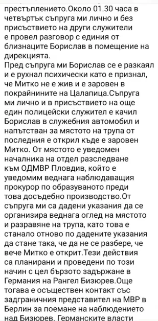 Тя е добавила и скрийншотове от постове на "семейния адвокат" , в който г-жа Костадинова изнася поредица подробности от разследването, които би трябвало да са в кориците на делото и не би следвало да са нейно достояние. Още повече , че самият Костадинов до този момент не е разпитван по делото и това не са публични показания.