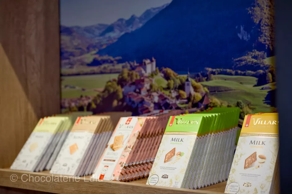 В „ЛюЛю“ няма масови продукти. Всичко е подбрано ръчно и идва от малки швейцарски производители, за които шоколадът е занаят, а не индустрия.