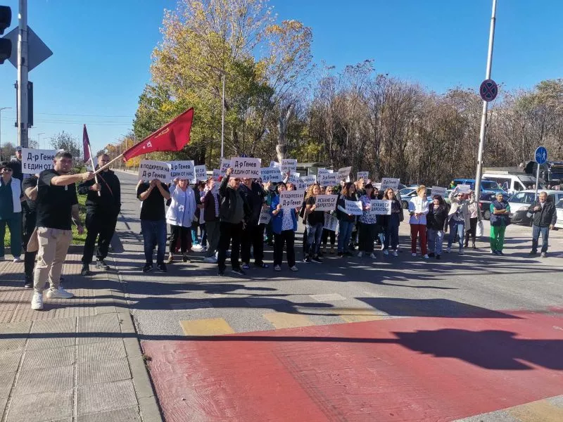 Недоволните лекари, медицински сестри, санитари и служители на здравното заведение издигнаха плакати "Искаме си директора" , "Д-р Генев- един от нас" и "В подкрепа на д-р Генев" и бяха категорични, че ще продължат с протестите си, докато не бъдат удовлетворени исканията им.
