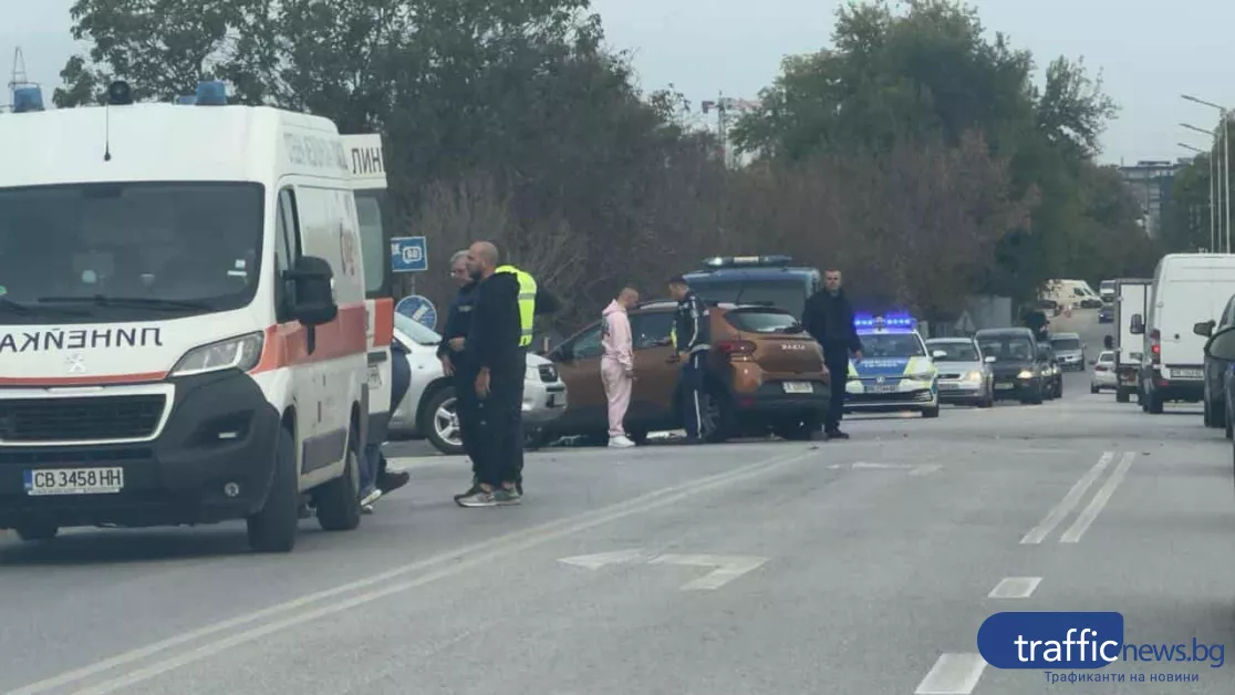На място има полицейски бус, патрул и линейка. На този етап няма информацията за състоянието на участниците в катастрофата.