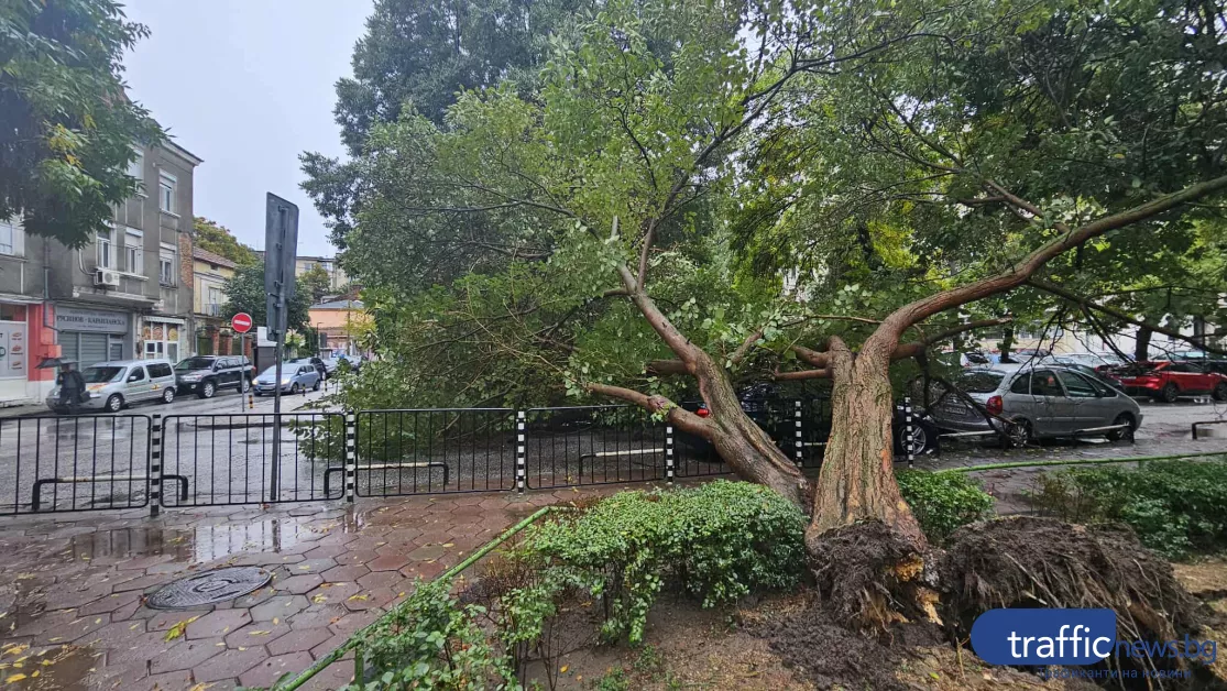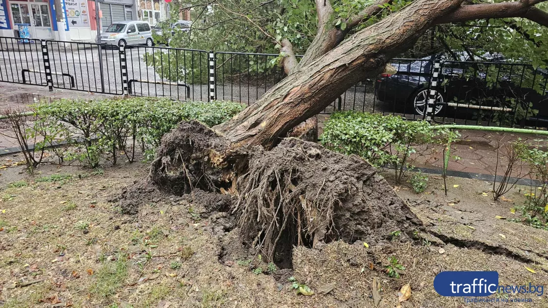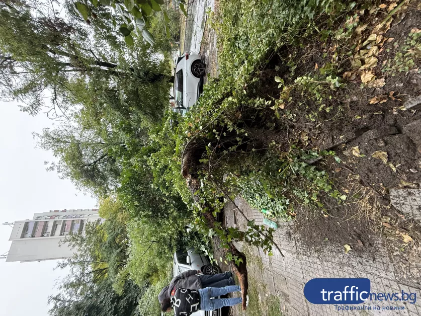 Пловдив се размина на косъм от трагедия, подобна на тази на бул. „Марица-север“, където клон падна върху човек и го уби. Голямо дърво е изкоренено и е рухнало на ул. „Хан Кубрат“, точно зад Съдебната палата и в близост до Хуманитарната гимназия, предаде репортер на TrafficNews.