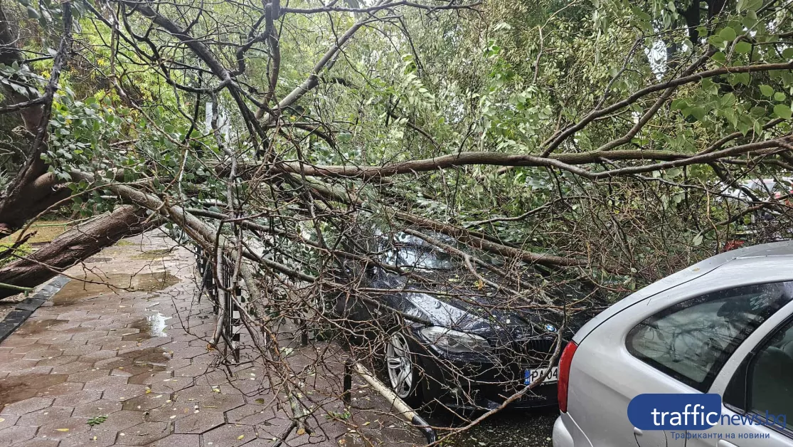 Това е вторият подобен инцидент само за часове. На бул. „Дунав“ 8 друго дърво също се е стоварило върху четири автомобила. И там по чудо няма жертви, но щетите по колите са сериозни. На място са екипи на пожарната и полицията.