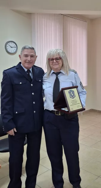 Заради придобитото право за пенсиониране и безукорната й дългогодишна служба, днес заместник-директорът на ОДМВР – Пловдив комисар Пламен Иванов връчи на гл. инспектор Валя Тодорова отличието „Почетен знак на МВР – III степен“, присъдено от министъра на вътрешните работи.