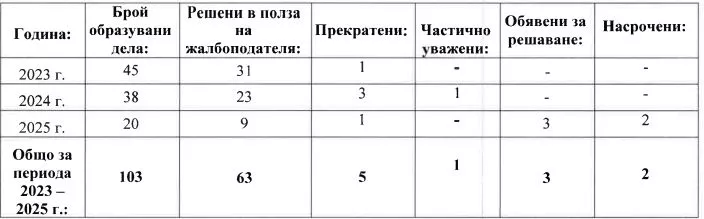 - 2025 г. (до март) – 20 дела, 9 отменени наказания, като част от останалите все още са висящи