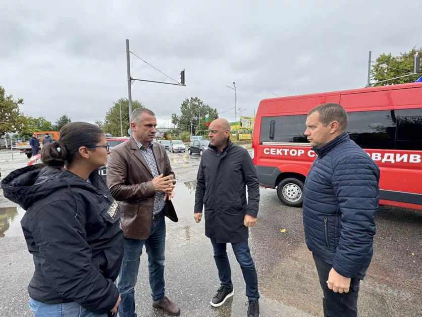 На мястото на затвореното кръстовище са кметът на Пловдив Костадин Димитров, зам.-кметът по екология Иван Стоянов, кметът на район „Южен“ Атанас Кунчев и експерти.