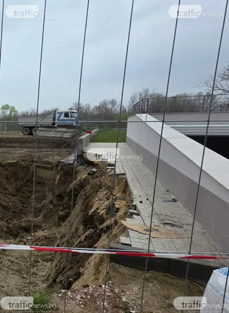 Снимки от проверка на място от наш репортер днес ясно показват изкопа, заради който земната маса е поддала, повличайки със себе си тротоарната настилка и срутвайки предпазната ограда на съседния имот. Инцидентът повдига сериозни въпроси за безопасността на строителните дейности, които се извършват буквално на границата между двата терена. Терени, които от своя страна са на буквално няколко метъра отстояние от водите на река Марица.