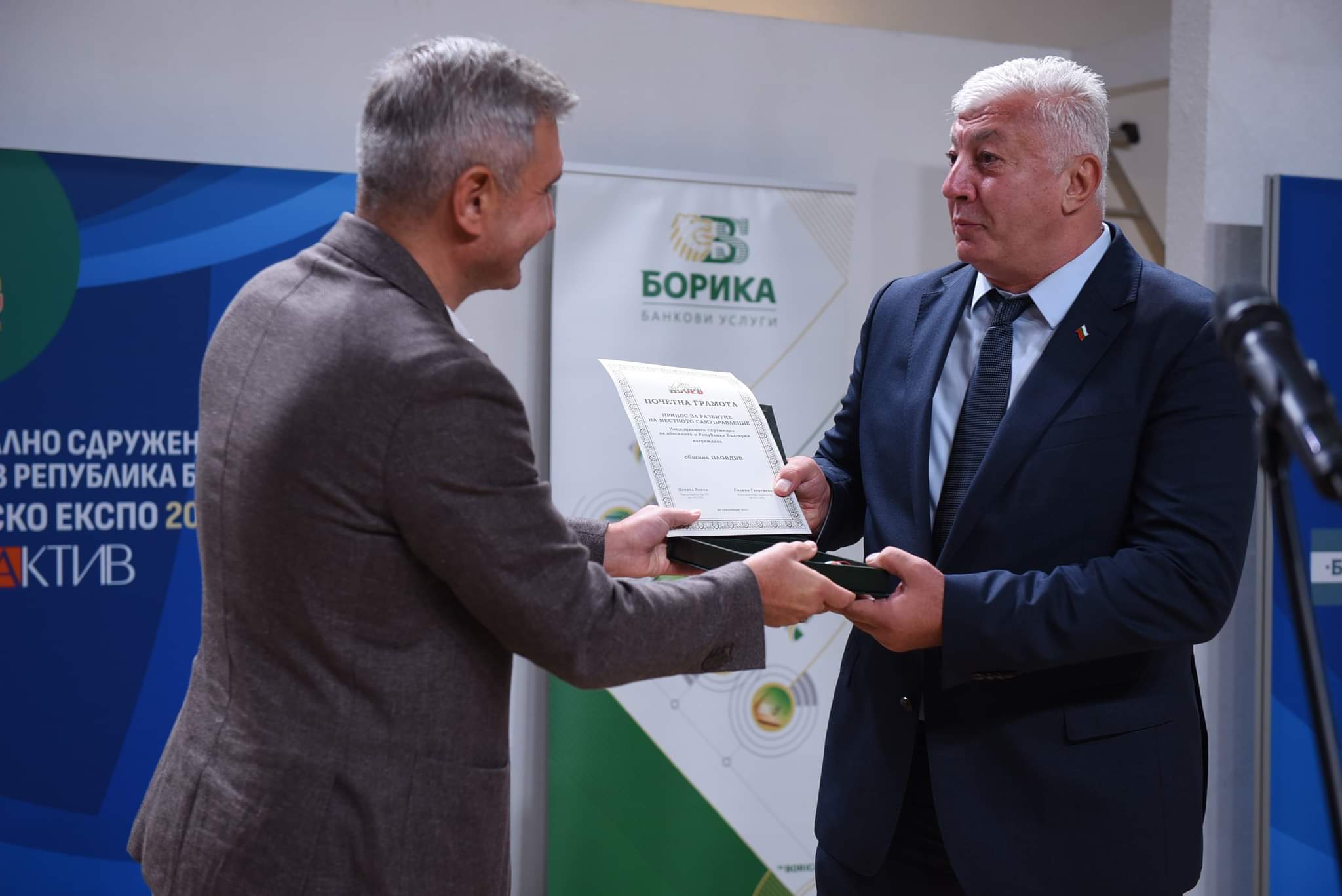 На сцената, за да получат заедно наградата, кметът покани и председателя на общински съвет Пловдив инж. Александър Държиков.