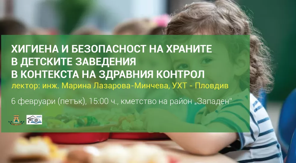 Лектор на събитието ще бъде инж. Марина Лазарова-Минчева от Университе та по хранителни технологии – Пловдив, която ще представи следните основни теми: значението на безопасността на храните за здравето на децата; основни етапи при работа с храни и потенциални рискове от замърсяване; практически правила за контрол и превенция на хранителни инфекции и актуални нормативни изисквания за хранене в детски ясли и детски градини и други свързани аспекти.