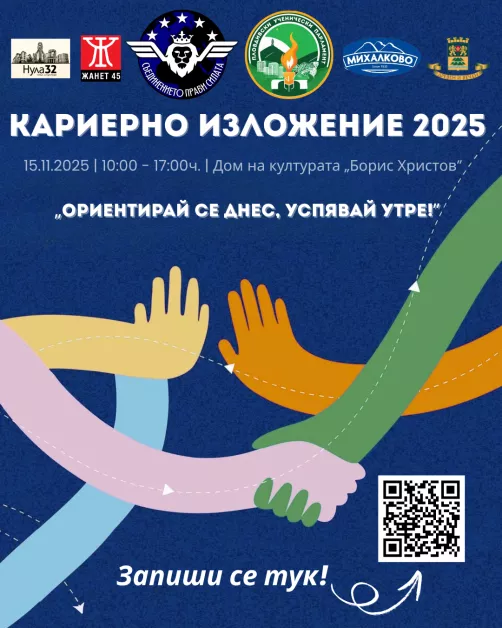 Пловдивски ученически парламент и пловдивското подразделение на младежкото сдружение „Съединението прави силата“ организират кариерно изложение под надслов „Ориентирай се днес, успявай утре“. Събитието ще се проведе на 15 ноември в Голяма конферентна зала на Дом на културата „Борис Христов“ от 10 до 17 часа.