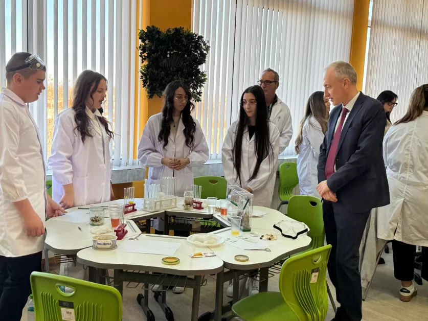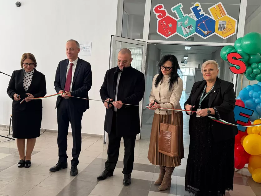 В училището днес беше открит и STEM център на стойност над 128 000 евро. Изградени са кабинети по химия, биология, математика и информатика с необходимото оборудване, което ще насърчи ученето чрез опити и експерименти. Обособени са и пет високотехнологични и свързани класни стаи.