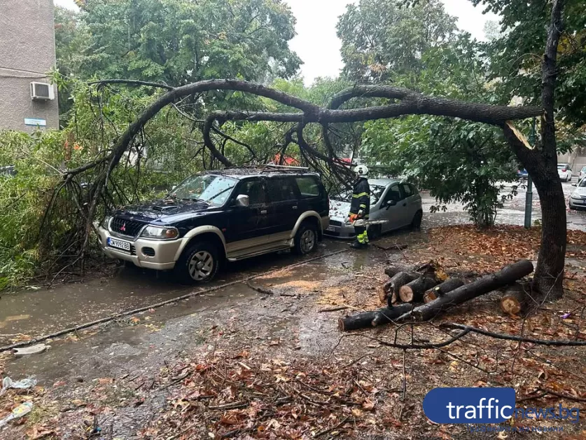 Заради проливния дъжд, който не спира да вали в Пловдив и към момента, дърво е паднало в район „Южен“. За това сигнализира читател на TrafficNews, като посочва, че инцидентът е станал на ул. „Студенец“. При падането си, дървото е увредило спрени наблизо автомобили и не позволява движението по улицата. Няма информация за пострадали хора, нанесени са само материални щети по засегнатите автомобили, които тепърва ще се оценяват.