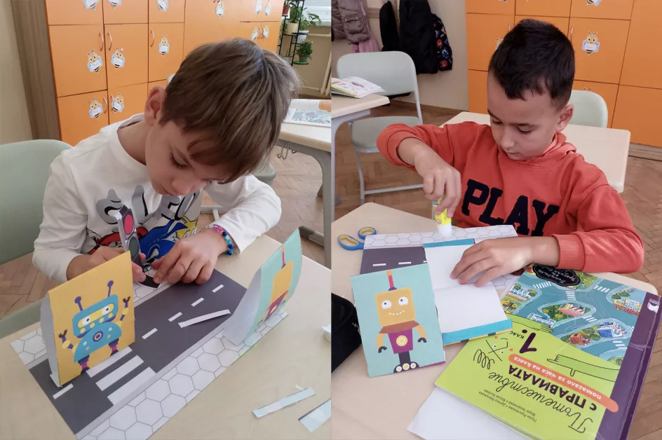 В богатата програма беше включено и арт ателие „Да нарисуваме безопасността“. Учениците от ОУ „Димитър Димов“ показаха своите таланти, като създадоха тематични карти, рисунки и плакати, посветени на пътната безопасност.