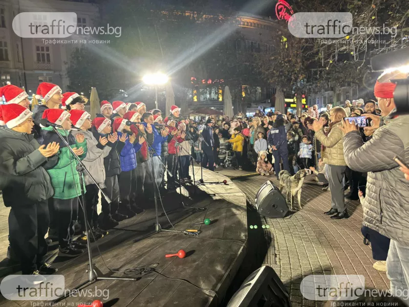 Празничният бутон беше натиснат от кмета на Пловдив Костадин Димитров след кратко приветствено слово, с което той пожела на всички светли, топли и вдъхновяващи празници. До него на сцената застанаха талантливите деца от Хор на пловдивските момчета „Стефка Благоева“ с ръководители Милка Толедова и Юлия Петрова. Техните изпълнения на „Коледни вълнения“, „Джинджъл белс“ и „Нова година“ създадоха неповторима празнична атмосфера.