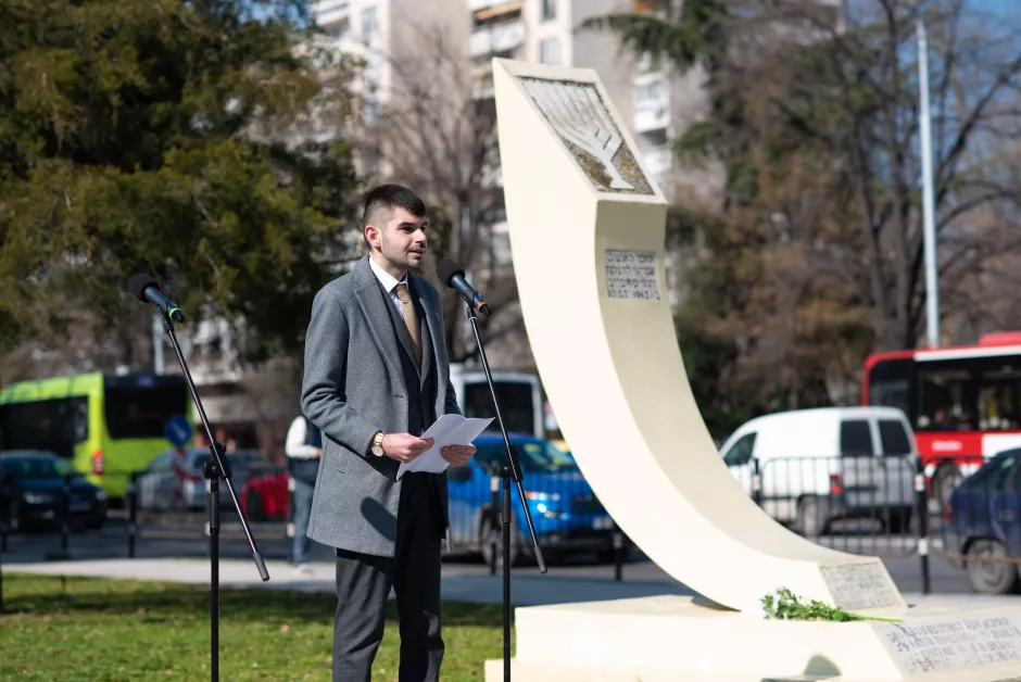 „В годините на Втората световна война Европа е потопена в страх, омраза и унищожение. Милиони невинни хора стават жертви на нацистката идеология, сред тях са и милиони евреи. Именно в тези мрачни времена България показва, че дори в най-тежките исторически изпитания човешкото достойнство, моралът и съвестта могат да надделеят. Спасението на българските евреи не е дело на един човек – то е дело на едно общество“, заяви Кристиян Ангелов.