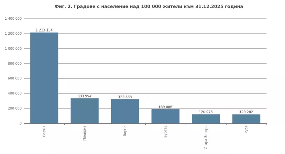 Пловдив запазва ролята си на втория по големина град в България. Към края на 2025 г. населението на общината достига 333 994 души, което я нарежда непосредствено след столицата. На този фон концентрацията в големите градове се задълбочава – едва няколко общини събират над 40% от населението на страната.