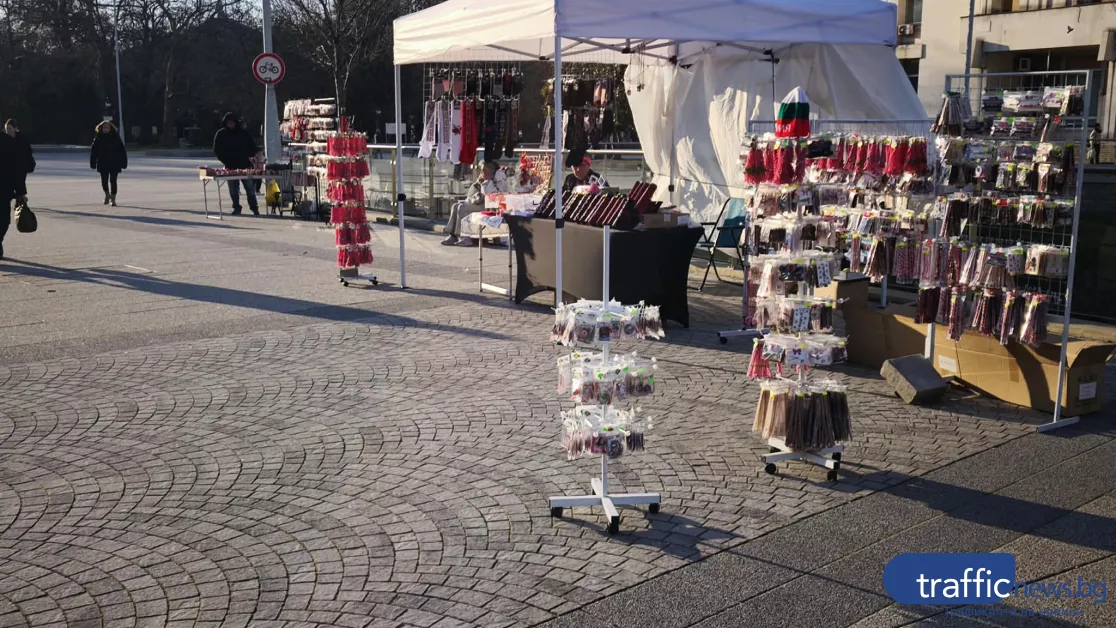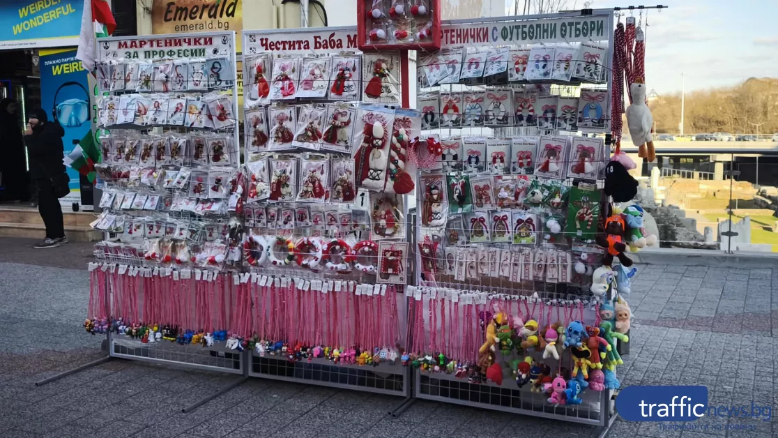 Не по-малко оживено е и пред Централна поща Пловдив, където десетки търговци на мартеници са подредили пъстри щандове и превръщат пространството в истинска феерия от червено-бели украшения. Навсякъде се виждат разнообразни модели – от класически усукани конци и традиционни български символи до модерни интерпретации с мъниста, дърво и текстил. Сред тях изпъкват гигантски Пижо и Пенда, богато украсени шевици и артистични композиции, които съчетават автентичния фолклор с ново, съвременно звучене.