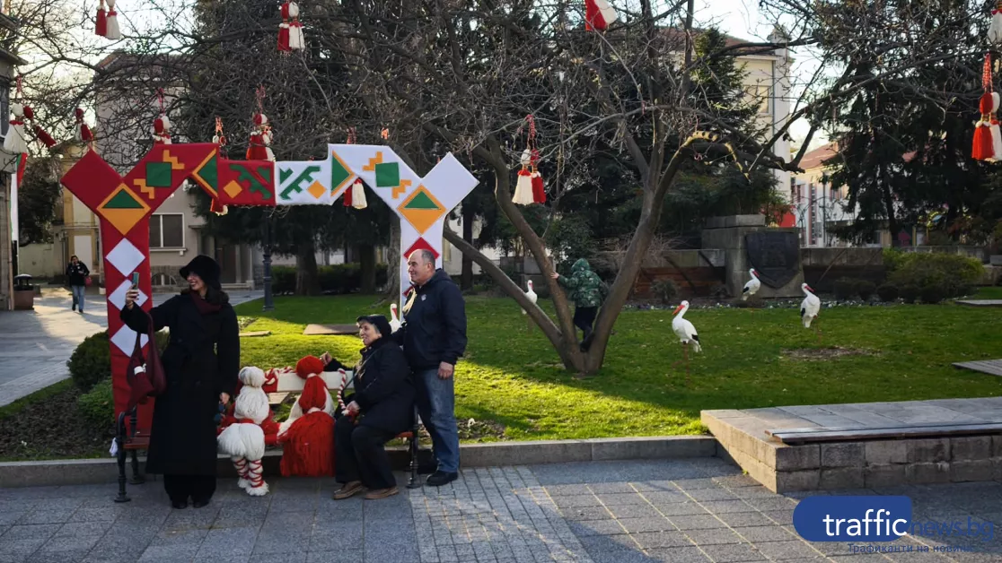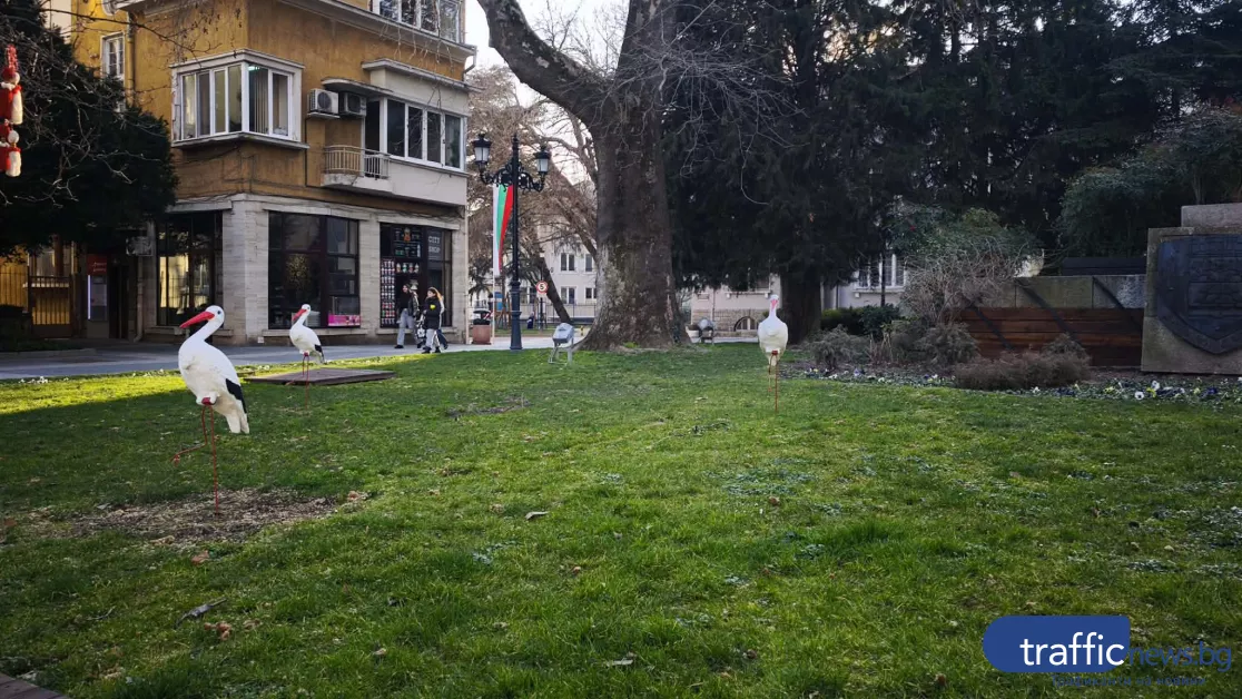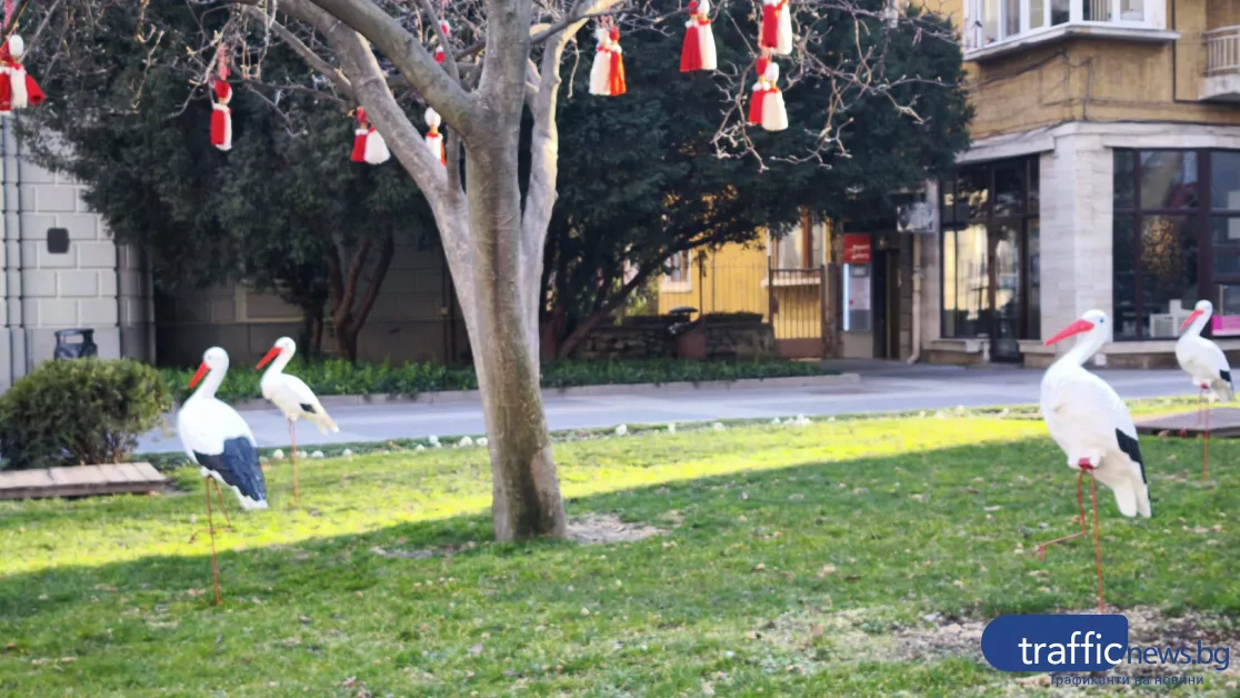 От дръвчетата в района вече се поклащат гигантски мартеници, а в тревните площи са „кацнали“ емблематичните щъркели - вечните вестители на пролетта. Те допълват пасторалната атмосфера и подсказват, че зимата постепенно отстъпва място на по-топли дни.