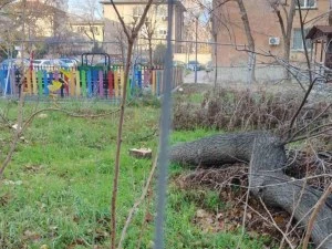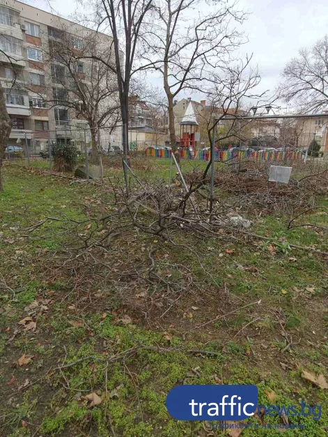 Тогава при един от опитите за кастрене, клони паднаха опасно близо до мястото за игра, а едно от дърветата остана с частично изрязано стъбло и риск да се стовари върху оградата.