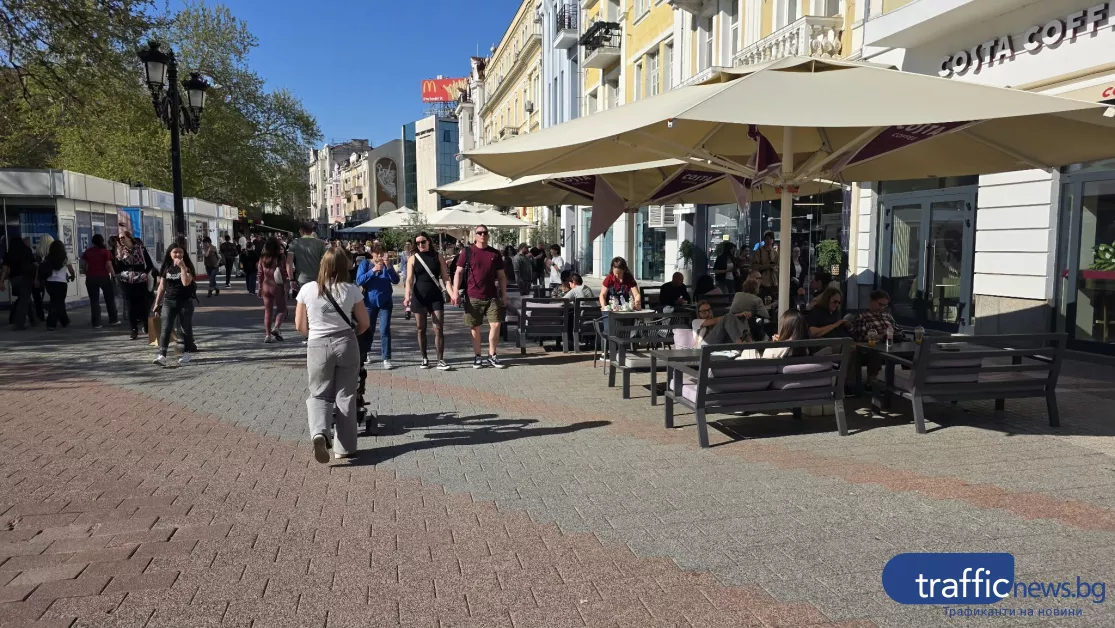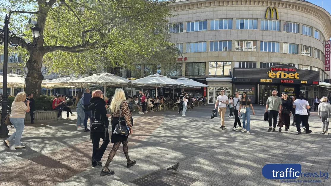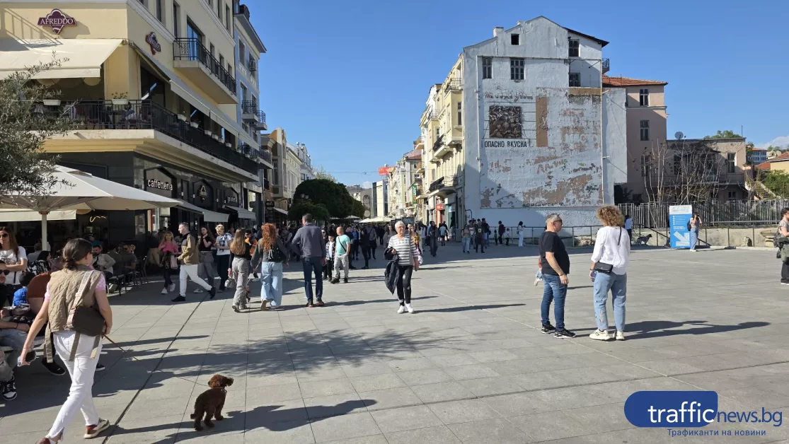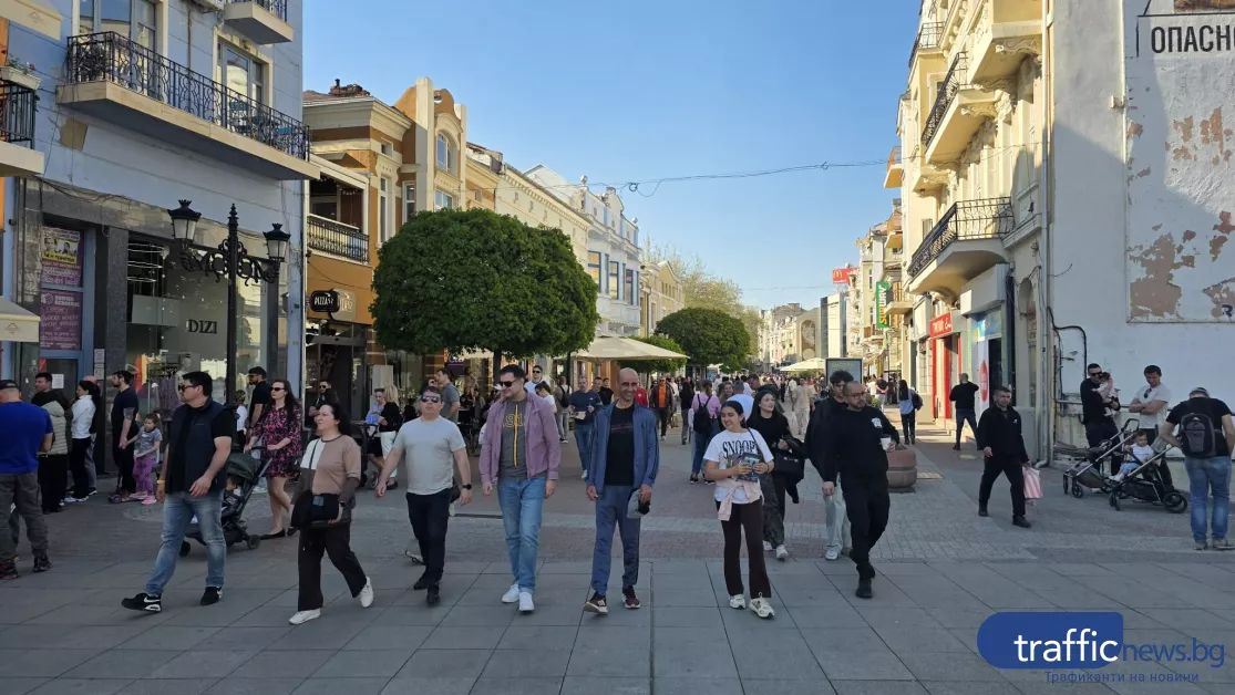 Пролетното слънце и температурите, достигащи близо 25 градуса, превърнаха неделния ден в истински празник за жителите на Пловдив. Още от ранните часове централната част на града се изпълни с хора, които избраха да се възползват от топлото време и да прекарат деня си на открито. Главната улица е превърната в оживена сцена, където стотици пловдивчани и гости на града се разхождат, срещат се с приятели и се наслаждават на разнообразните забавления.