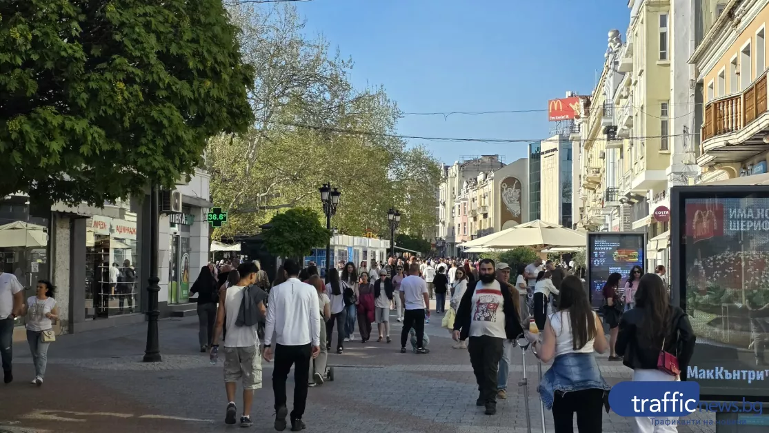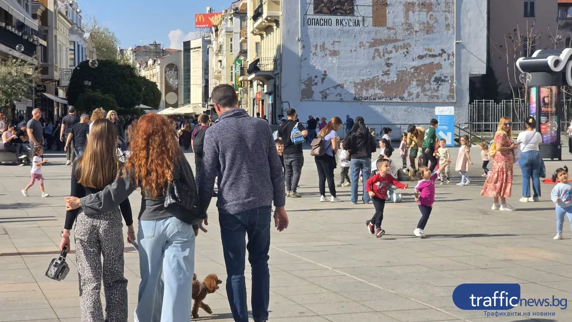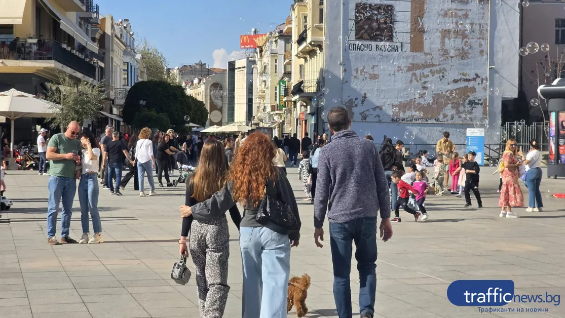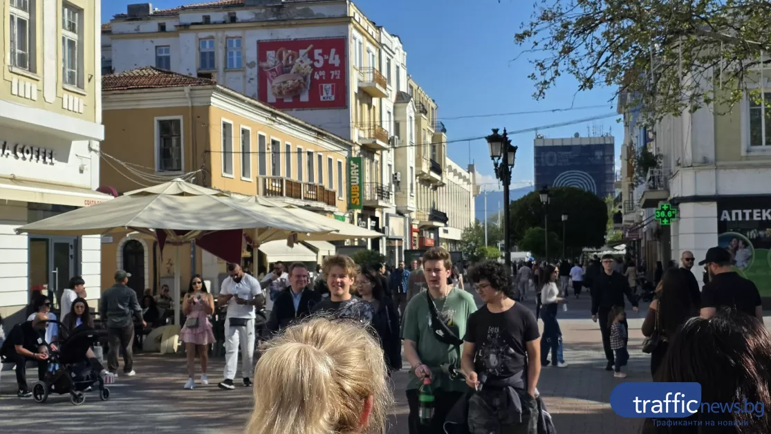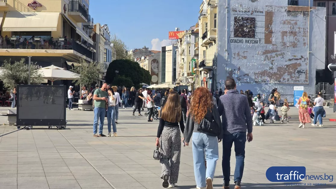 Пролетното слънце и температурите, достигащи близо 25 градуса, превърнаха неделния ден в истински празник за жителите на Пловдив. Още от ранните часове централната част на града се изпълни с хора, които избраха да се възползват от топлото време и да прекарат деня си на открито. Главната улица е превърната в оживена сцена, където стотици пловдивчани и гости на града се разхождат, срещат се с приятели и се наслаждават на разнообразните забавления.