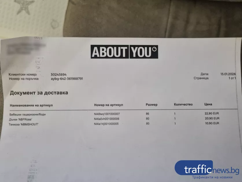 Първоначално семейството не забелязва разминаването. Истинската изненада идва няколко дни по-късно – на 22 януари 2026 г., когато решават да върнат два от закупените артикули. За целта влизат отново в профила на жената в приложението на About You, за да подадат заявка за връщане.