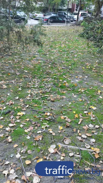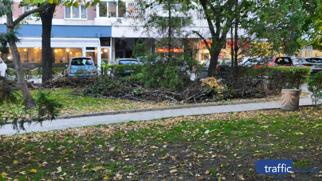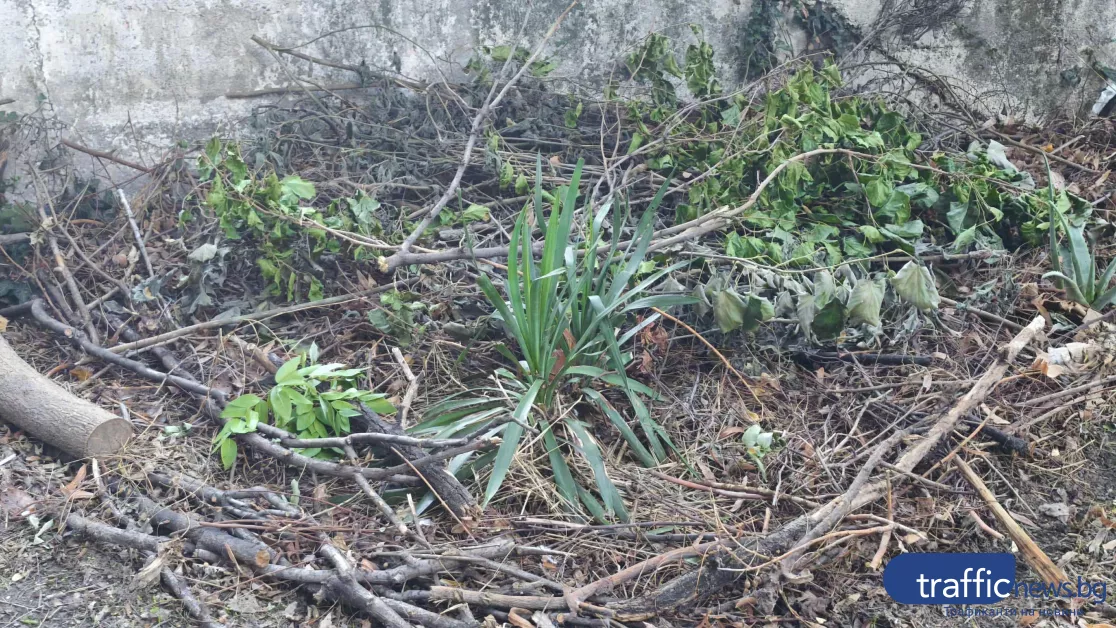 „Клони и листа масово се трупат на камари и цялата градина е зарита. Въпросният господин направи сметище в центъра на града”, оплака се пред TrafficNews жителка на квартала.