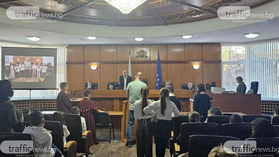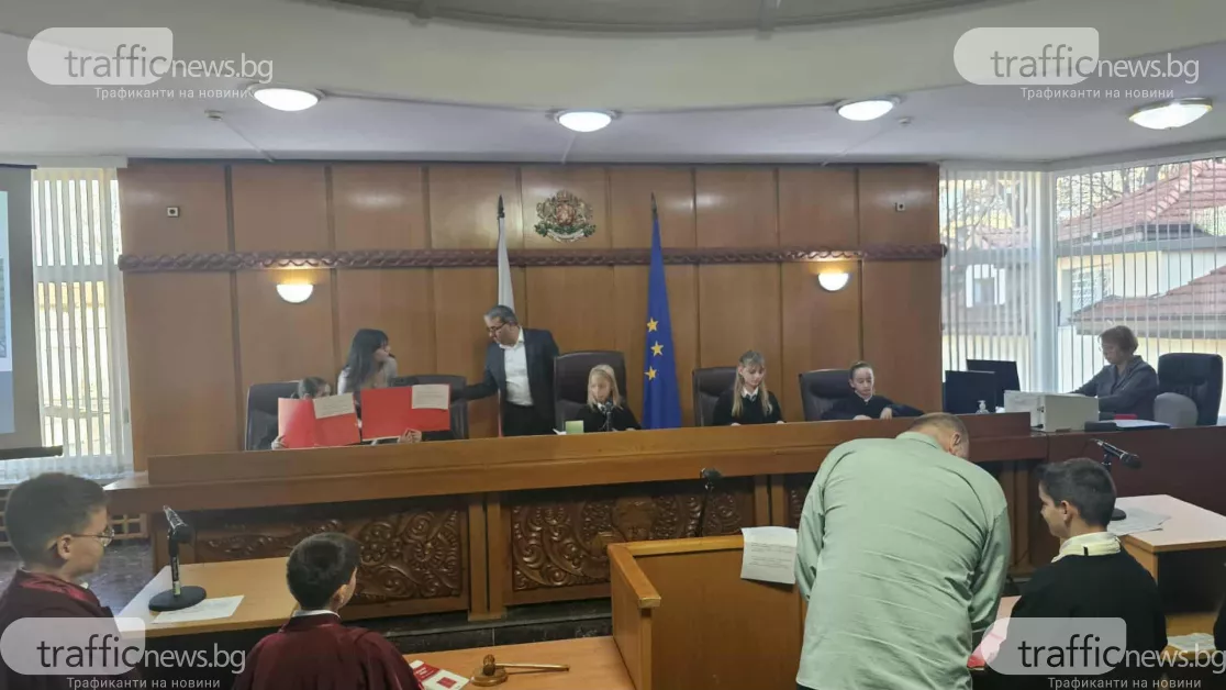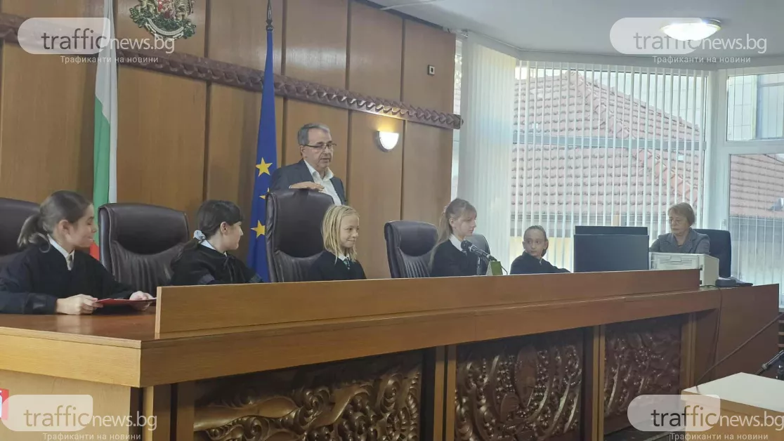 Инициативата е част от програмата за повишаване на правната грамотност сред най-малките. Председателите на трите съдилища посрещнаха децата, а съдия Миглена Тянкова откри урока.