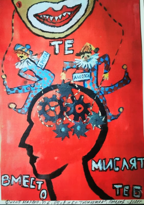 В час по изобразително изкуство, преподавателите Стоянка Коджаманова и Габриел Стойчев поставили задача, с която да провокират въображението им, пресъздавайки на белия лист вредата от зависимостите.
