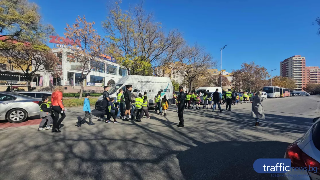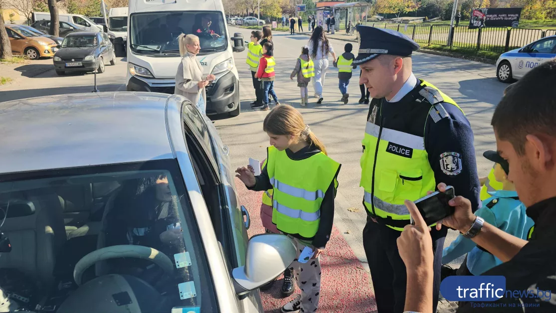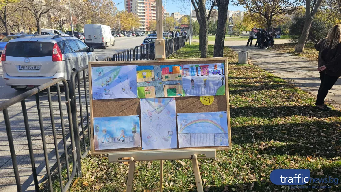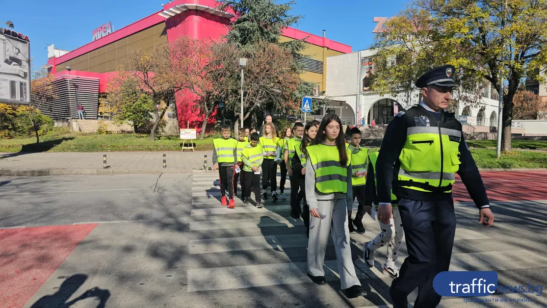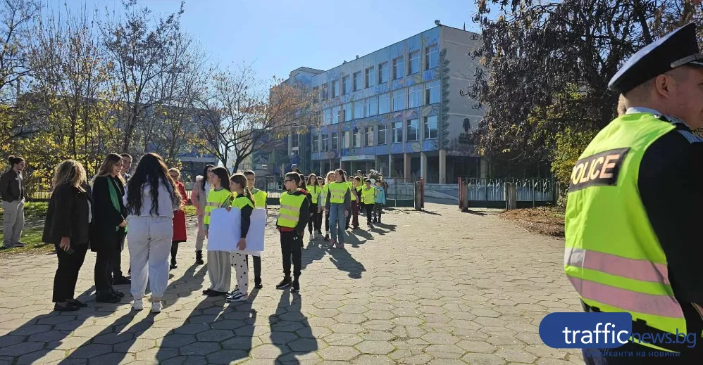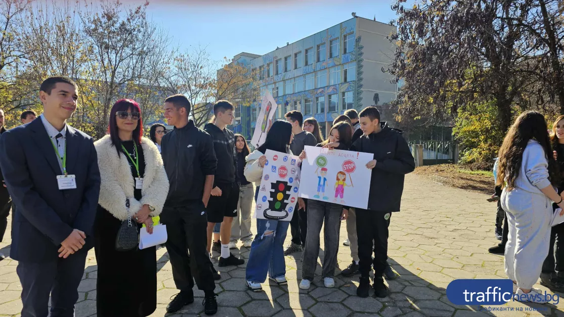 Деца от първи и четвърти клас изградиха „жива“ пешеходна пътека на улица „Съединение“, пред СУ „Софроний Врачански“ в Пловдив. Малчуганите положиха цветя на асфалта и тротоара в памет на загиналите в тежки пътни произшествия. Движението бе спряно от служители на Пето районно управление, партньори в инициативата.