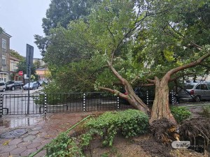 По-рано днес голямо дърво се е изкорени и на ул. „Хан Кубрат“, точно зад Съдебната палата и в близост до Хуманитарната гимназия.