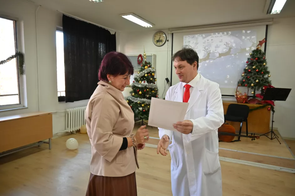 Традиционният празник на дарителите в Клиниката по педиатрия към УМБАЛ „Свети Георги“ събра и тази година лекари, пациенти, техните семейства и десетки благодетели, които със сърце и щедрост подкрепят малките пациенти. Събитието се превърна в ден на светлина, доброта и признателност – ценности, които обединяват общността около най-важната кауза: здравето на децата. През изминалата година фирми, училища, детски градини, сдружения и множество дарители превърнаха обикновените дни в празници. Благодарение на тяхната щедрост бяха подпомогнати нуждите на клиниката, осигурени бяха необходима апаратура, оборудване и подкрепа за лечението и престоя на децата. Сред дарителите се открояват училищата: ОУ „Васил Левски“, ОУ „Душо Хаджидеков“, ОбУ ,,Пенчо Р. Славейков“, СУ „Свети Седмочисленици“, СУ „Княз Александър I“, НУ „Васил Левски“ – Пазарджик, също така студенти и служители от МУ – Пловдив, както и десетки физически лица. Празникът бе озарен от изпълненията на Вокална група „Бамбини“ към ЦПЛР–ОДК Пловдив, Школата по художествена гимнастика към ЦПЛР–ОДК, деца от НУМТИ „Добрин Петков“ и млади таланти, които представиха музикални и поетични изпълнения. Тяхната енергия и светлина създадоха атмосфера на надежда и солидарност. Началникът на Клиниката по педиатрия доц. д-р Иван Янков направи равносметка на изминалата година и връчи грамоти на 27-те дарители, подкрепили каузата на клиниката.