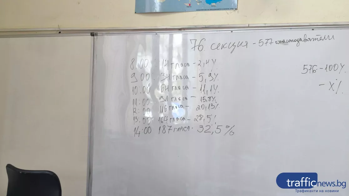 Подобна е ситуацията и в ОУ „Душо Хаджидеков“, където към 14:00 часа в някои секции е отчетена активност от 32,5 процента.