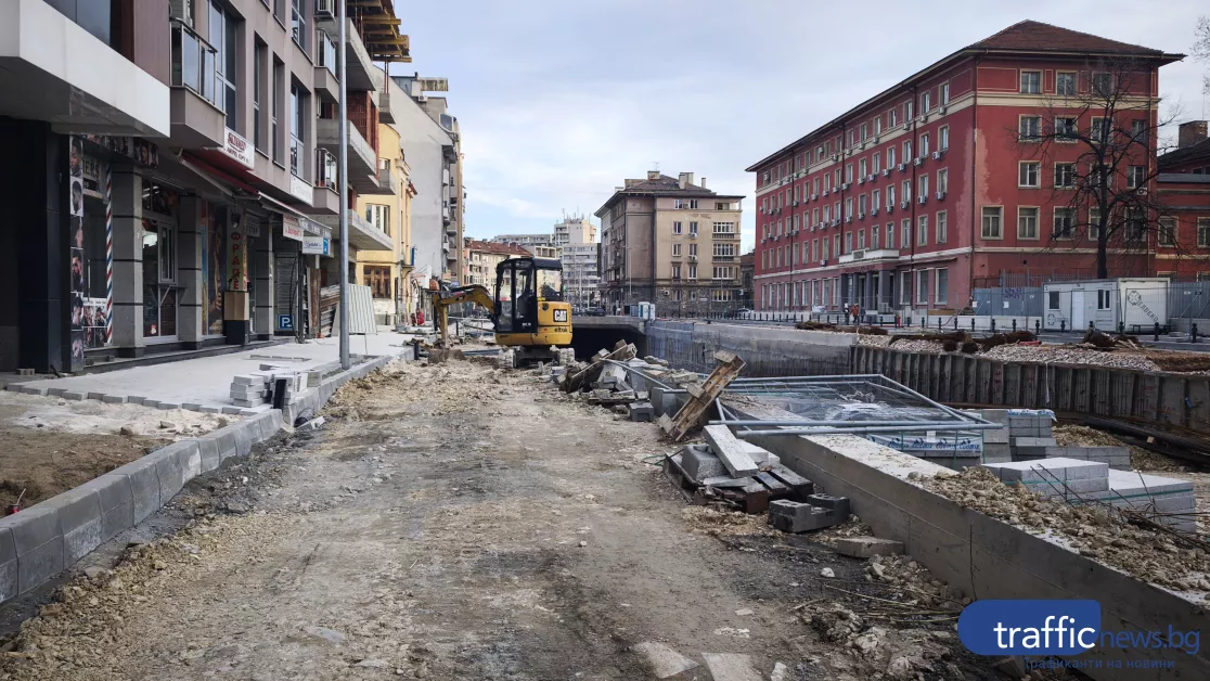 На юг, в района на стадион „Тодор Диев“, се извършват мащабни изкопни работи за изземване на земна маса и оформяне на рампата с необходимия проектен наклон, за да се подготви теренът за последващо бетониране. Сериозен видим напредък има и при локалните платна на бул. „Васил Априлов“ – западното вече разполага с асфалтирана велоалея и завършен тротоар, които са отворени за пешеходци, а източното локално платно е почти напълно оформено с поставени бордюри.