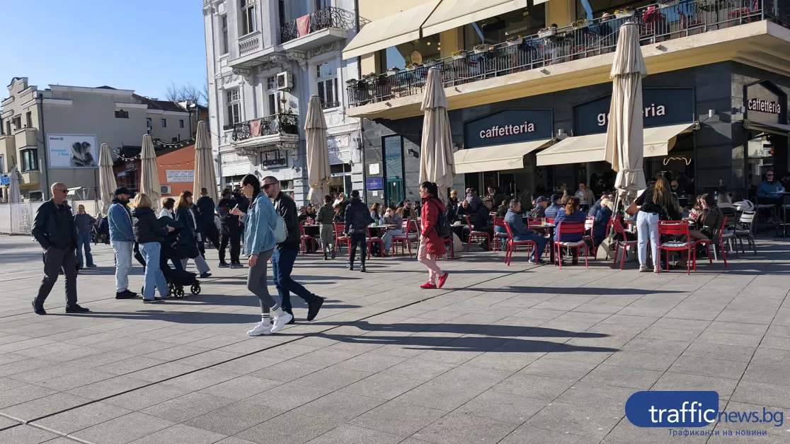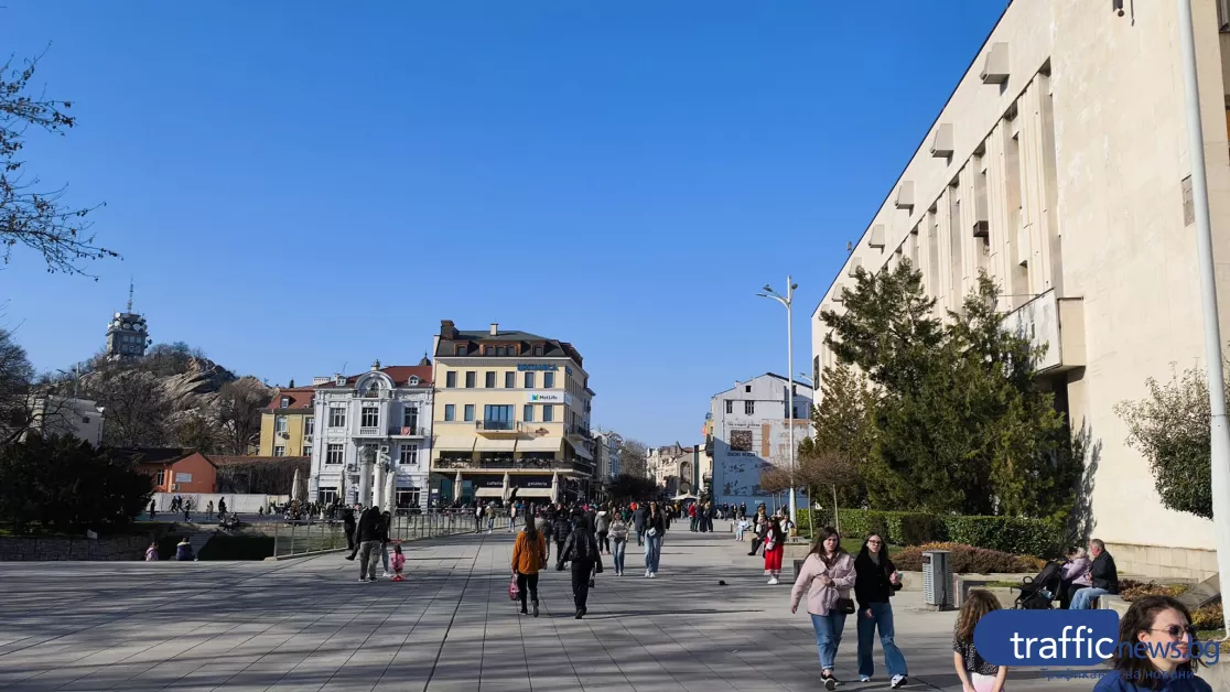 Главната улица на Пловдив гъмжи от хора, излезли на следобедна неделна разходка. Високите температури и щедрото слънце в неделния ден извади пловдивчани и гостите на града на припек, видя репортер на TrafficNews.