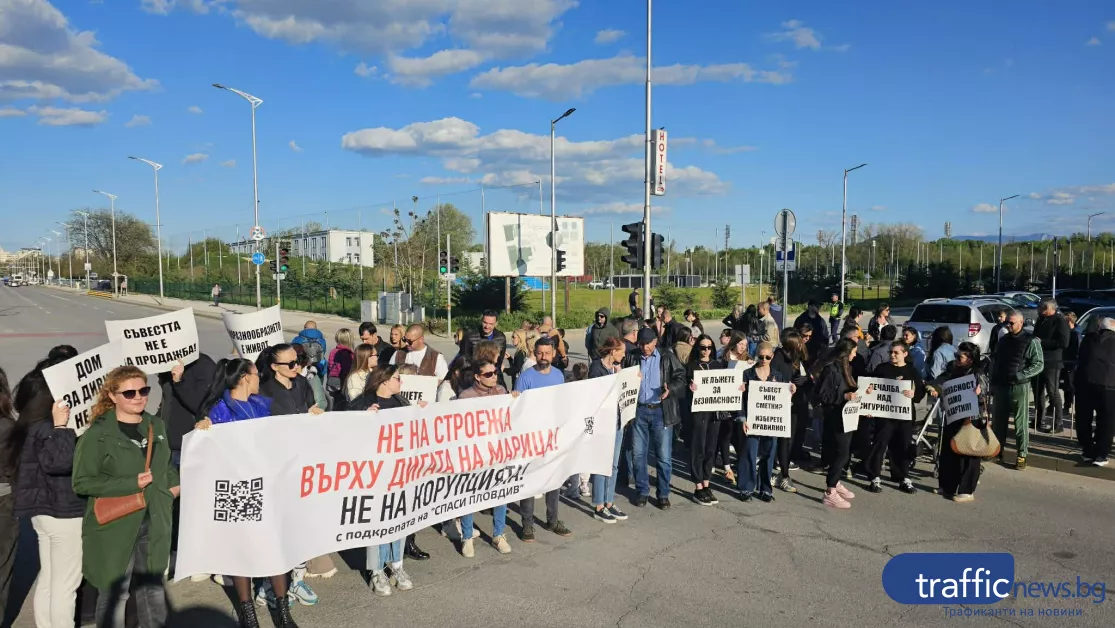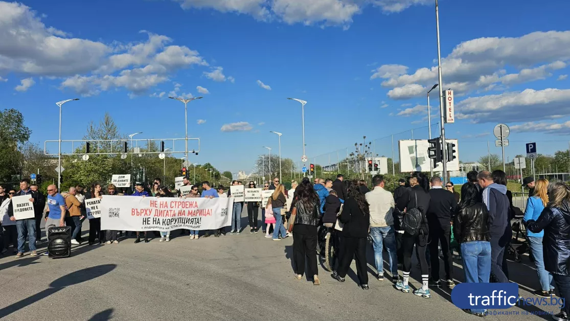 Жители на кв. "Марица Север" излязоха на протест, блокирайки възловото кръстовище на бул. „България“ в района на Спортната зала на Пловдивски университет и голям строителен магазин. Причината - новозапочналото строителство в непосредствена близост до речното корито и точно пред комплекса "Марица Гардънс". Над 50 души със семействата си блокираха и двете платна на бул. "България", предава репортер на TrafficNews.