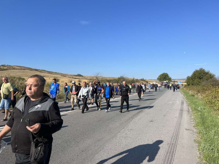 Работещите в минния комплекс казаха, че ако на бъдат пуснати, ще тръгнат пеша до магистралата. Полицията опита да спре протестното шествие, хората обаче минаха през нивите и тръгнаха в посока АМ “Струма”