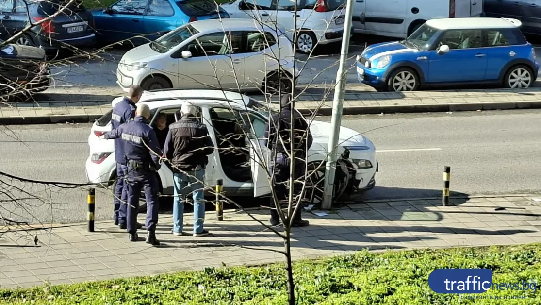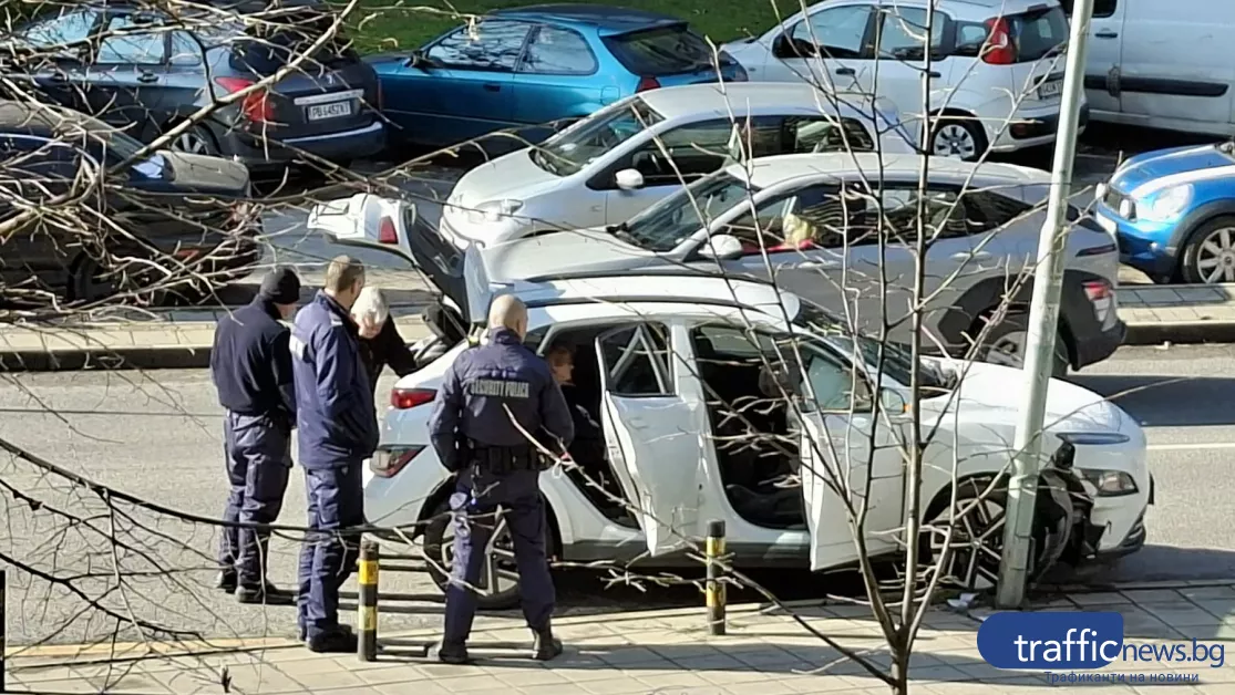 На мястото има екипи на полицията, които обработват катастрофата по административен ред. Щетите по автомобила не са сериозни