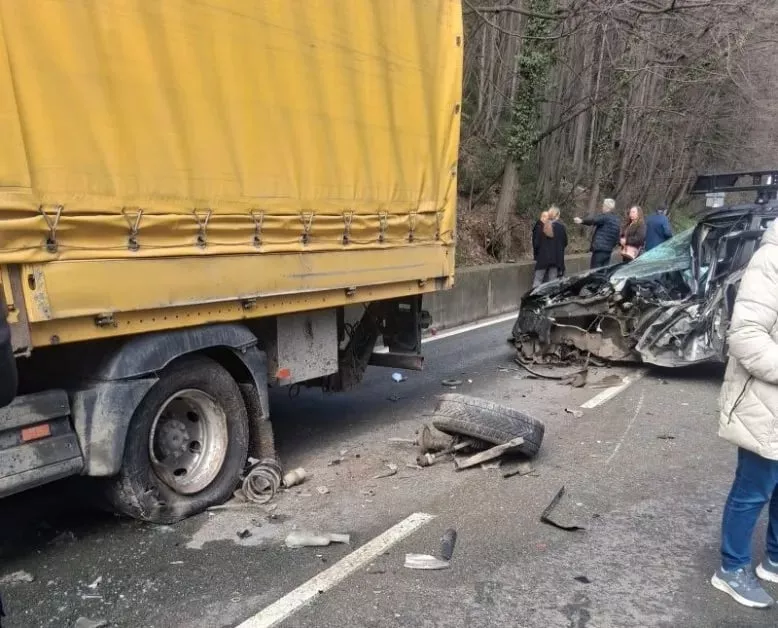 По първоначална информация лек автомобил BMW се е врязал в тир, при което колата е била сериозно смачкана. В нея са пътували трима души, като ударът е бил изключително силен.