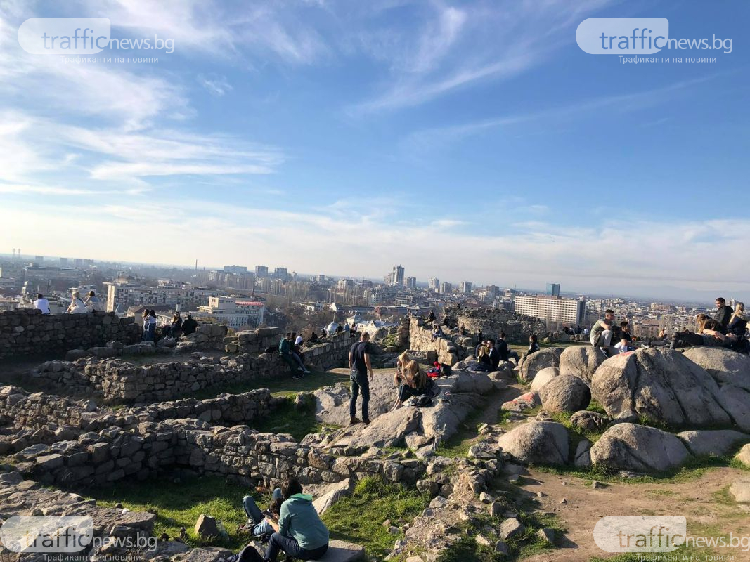 Пролетното време изкара пловдивчани навън. Термометърът днес достигна 19 градуса и мнозина използваха почивния ден, за да спортуват, да разходят домашните любимци или да се позабавляват с децата. Най-предпочиталите за това места се оказаха Гребната база и тепетата.